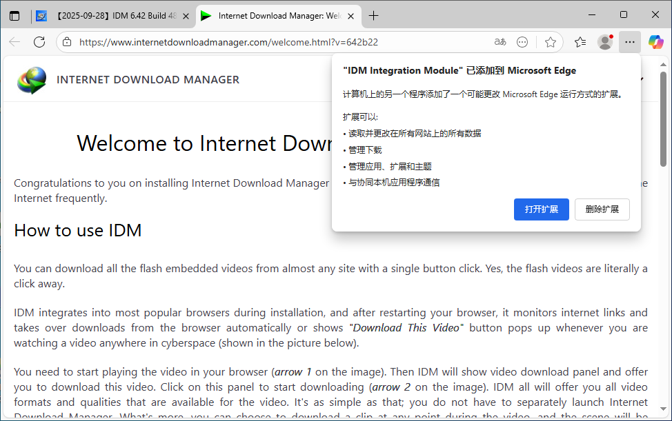 打开IDM,自动安装插件