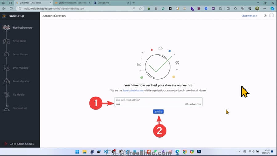 这一步就意味着免费的zoho企业域名邮箱就注册完成了。