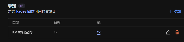 绑定KV空间,名称:kv 值:刚才创建的KV